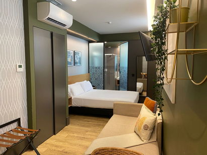 Estudio con capacidad para hasta 3 personas. Dispone de cocina y baño privado. Está equipado con cocina y menaje básico, baño privado con artículos de aseo gratuitos, Wi-Fi, aire acondicionado y televisión.