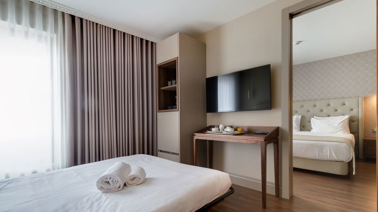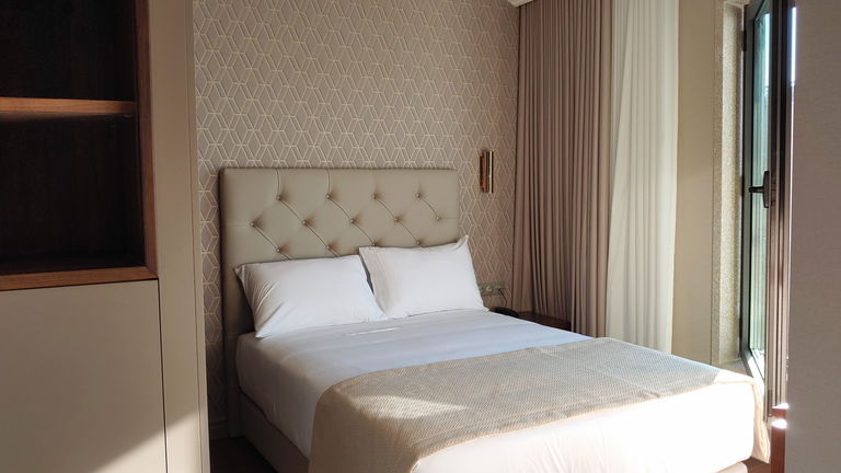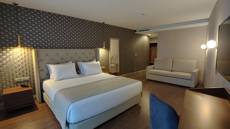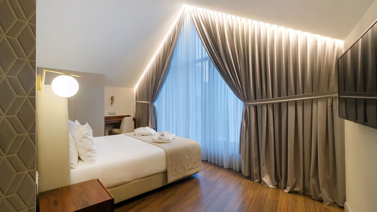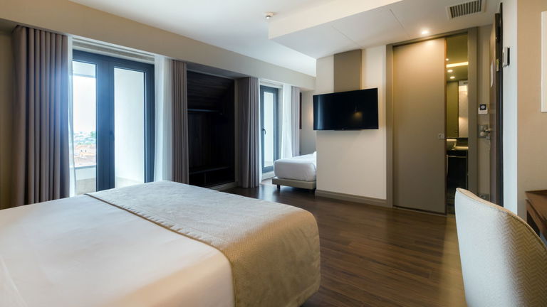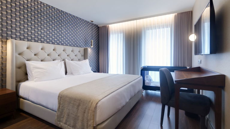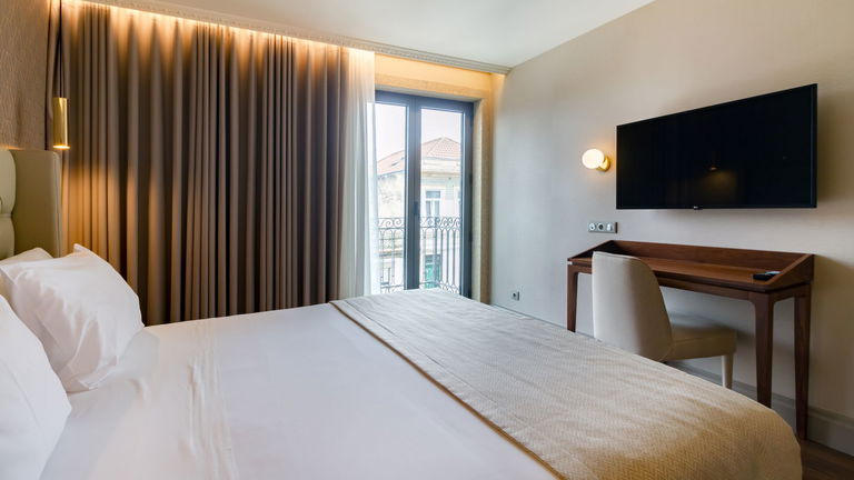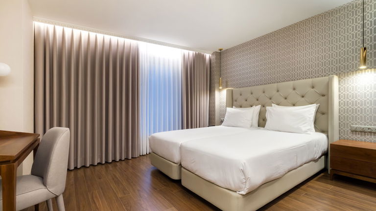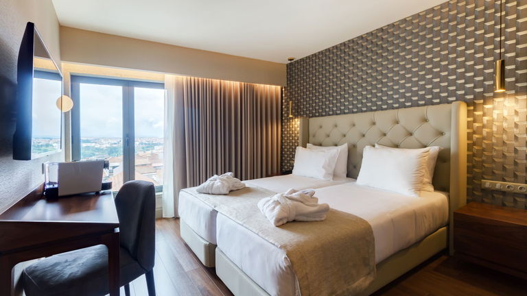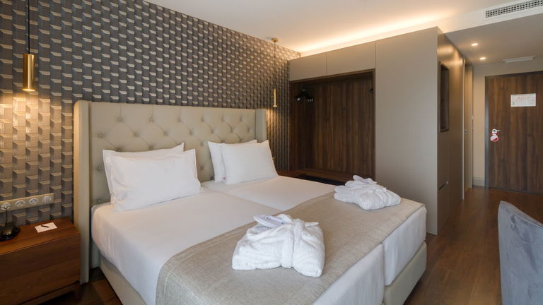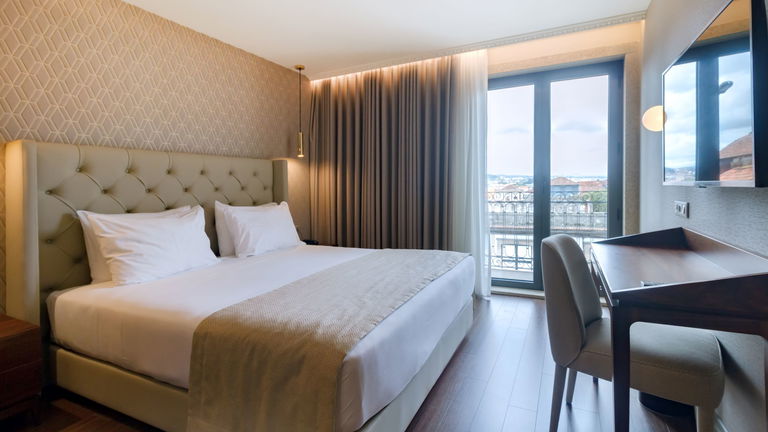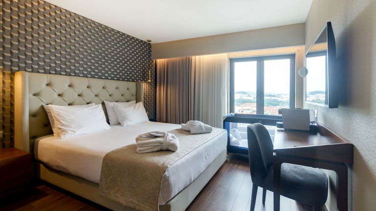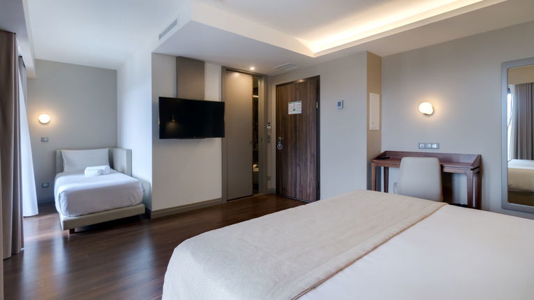 Are you traveling as a family? We have the ideal room for your rest! Spacious rooms with two balconies and a chaise longue, located on the 6th floor of the hotel with views of the green skyline of Porto.
