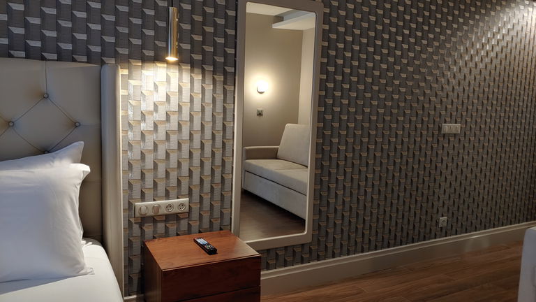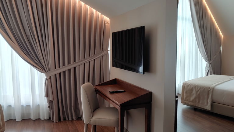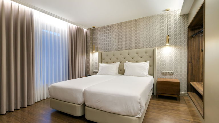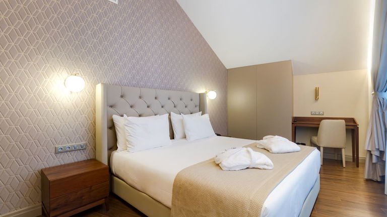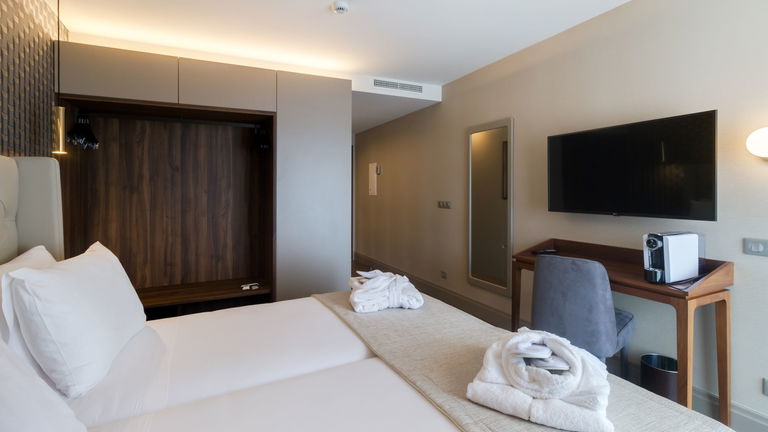 The room has: double bed (180cm) or two single beds, armchair, coffee maker, bathrobe, slippers, superior amenities, minibar, telephone, hairdryer, safe, 43 'Smart TV and free Wi-Fi.