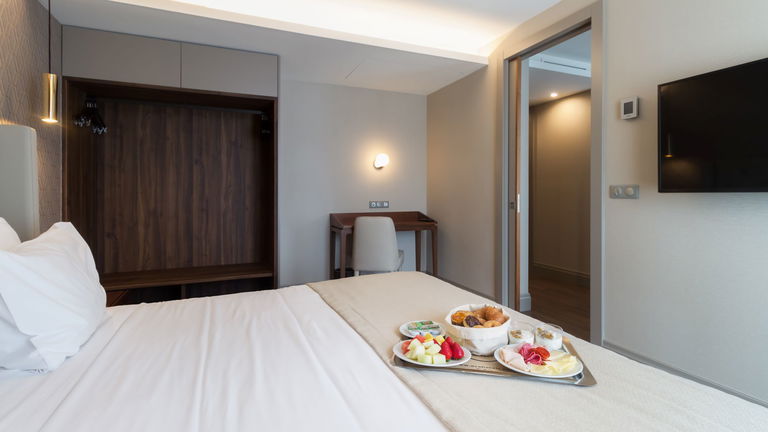Equipped so that you enjoy maximum comfort and a deep rest. The room has: armchair, minibar, telephone, hairdryer, amenities, safe, 43 'Smart TV and free Wi-Fi among other services.