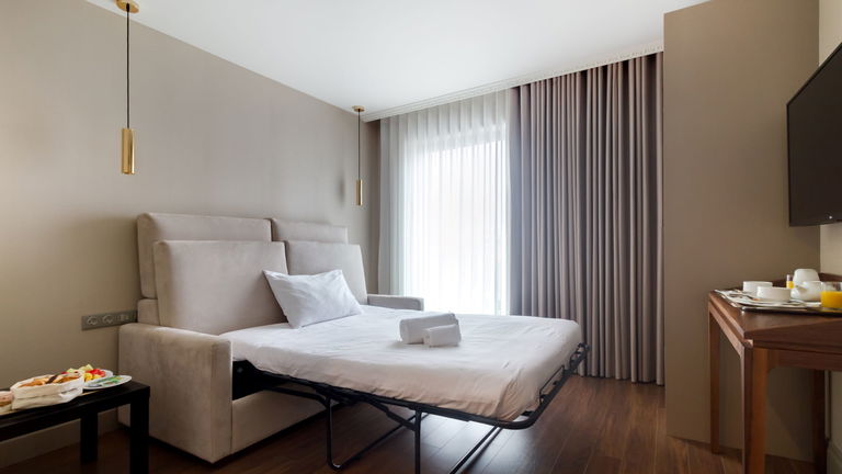 Are you traveling as a family? We have the ideal room for your rest! Spacious and modern rooms with a double bed (180cm * 2m) and a sofa bed (140cm * 2m), equipped so that you can enjoy maximum comfort and a deep rest.