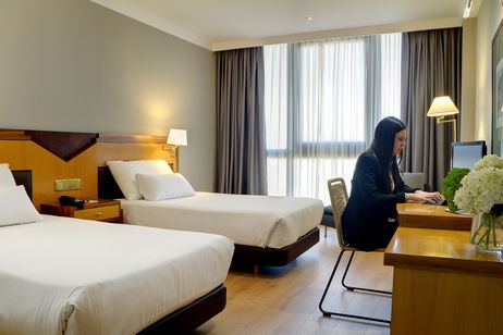 Comfortable and spacious rooms with 30 m2 available with two beds or double bed (on request and upon availability), flat screen TV with satellite channels, safety box, minibar and a complete bathroom.