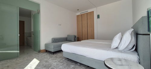 Modern exterior rooms with a double bed (200*200) and a single bed (90*200), equipped with everything you need for maximum comfort.
