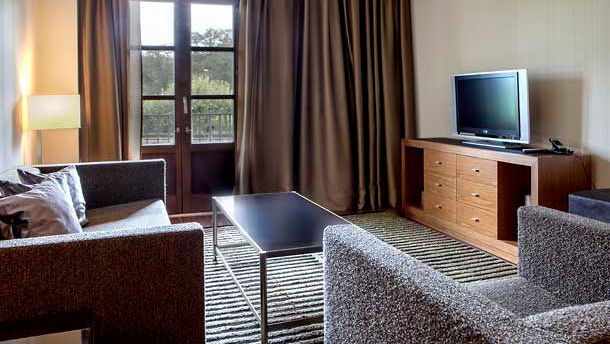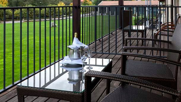 Cama king size e acesso a terraço individual. Possui sofá, cadeira, escrivaninha, cofre, frigobar, TV, telefone e internet Wifi. O banheiro possui banheira e chuveiro separados, espelho de maquiagem iluminado e secador de cabelo.