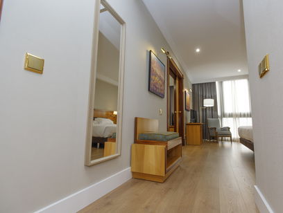 Espaçosas e confortáveis, nossas suítes de 60 m2 com sala de estar independente possuem uma cama king size ou duas camas, TV de tela plana, sofá, chaleira com infusões, cafeteira cápsula, chinelos, roupão, cofre, minibar e banheiro completo com amenities extras.