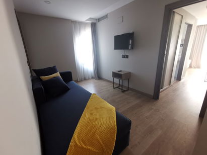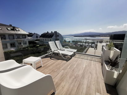 Quarto amplo com sala de estar, cama de casal (1,80 cm), terraço e vista para o Mar Cantábrico.